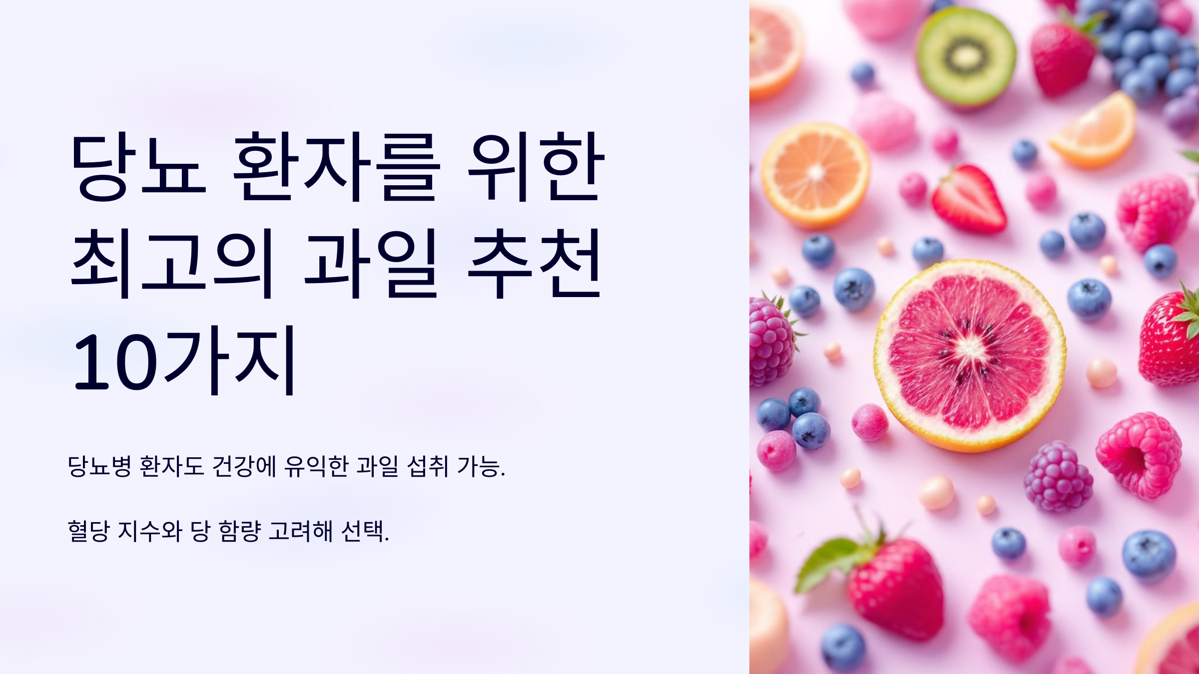 당뇨병 환자는 음식 선택에 매우 신중해야 하지만, 건강에 유익한 과일을 적절히 섭취하면 혈당 조절에 도움을 줄 수 있습니다. 다만, 과일마다 혈당에 미치는 영향이 다르기 때문에 과일을 선택할 때는 혈당 지수(GI)와 당 함량을 고려해야 합니다. 당뇨 환자도 부담 없이 즐길 수 있는 과일을 소개합니다.