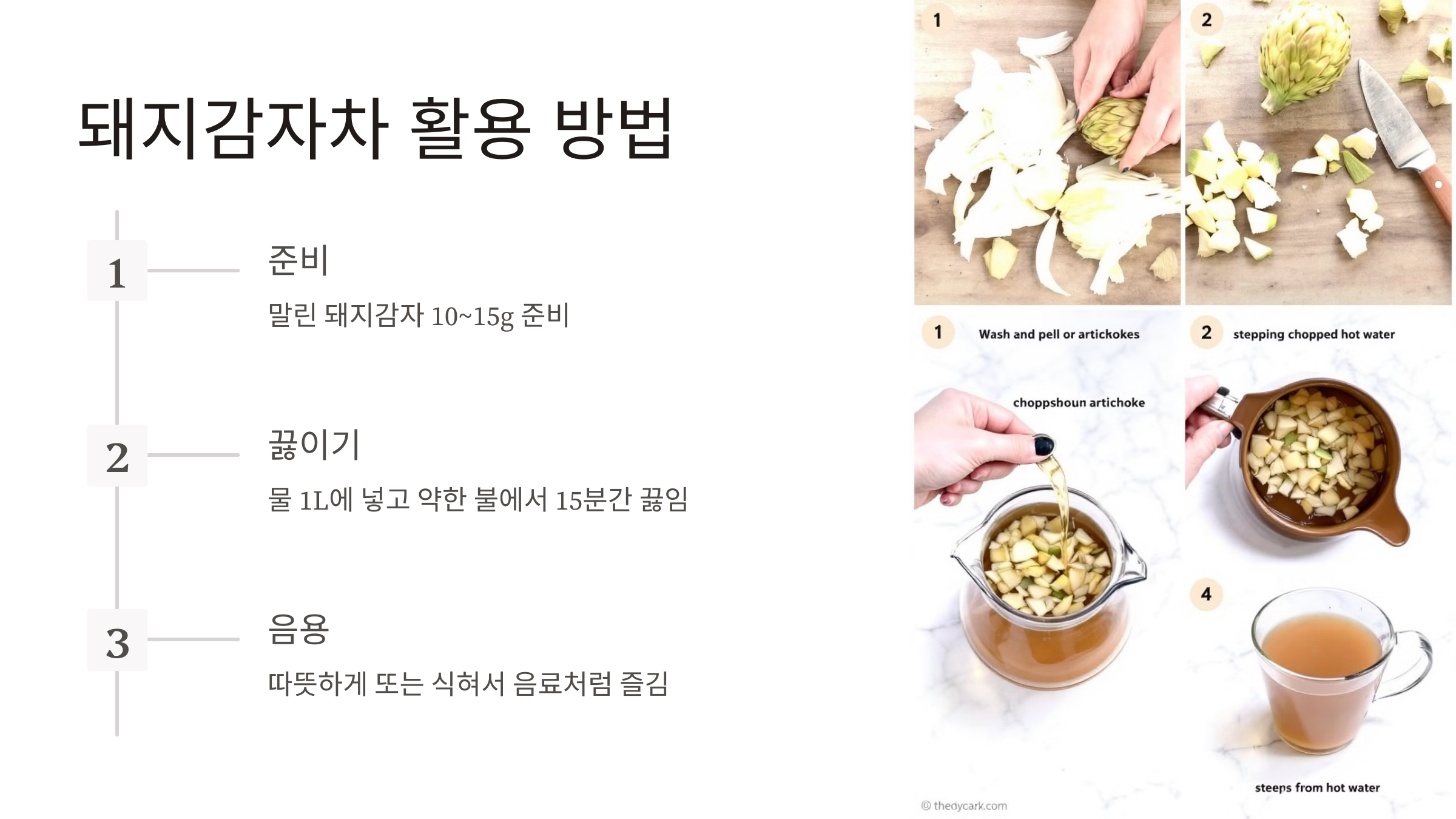 - 혈당 조절과 수분 섭취를 동시에 원한다면 돼지감자차