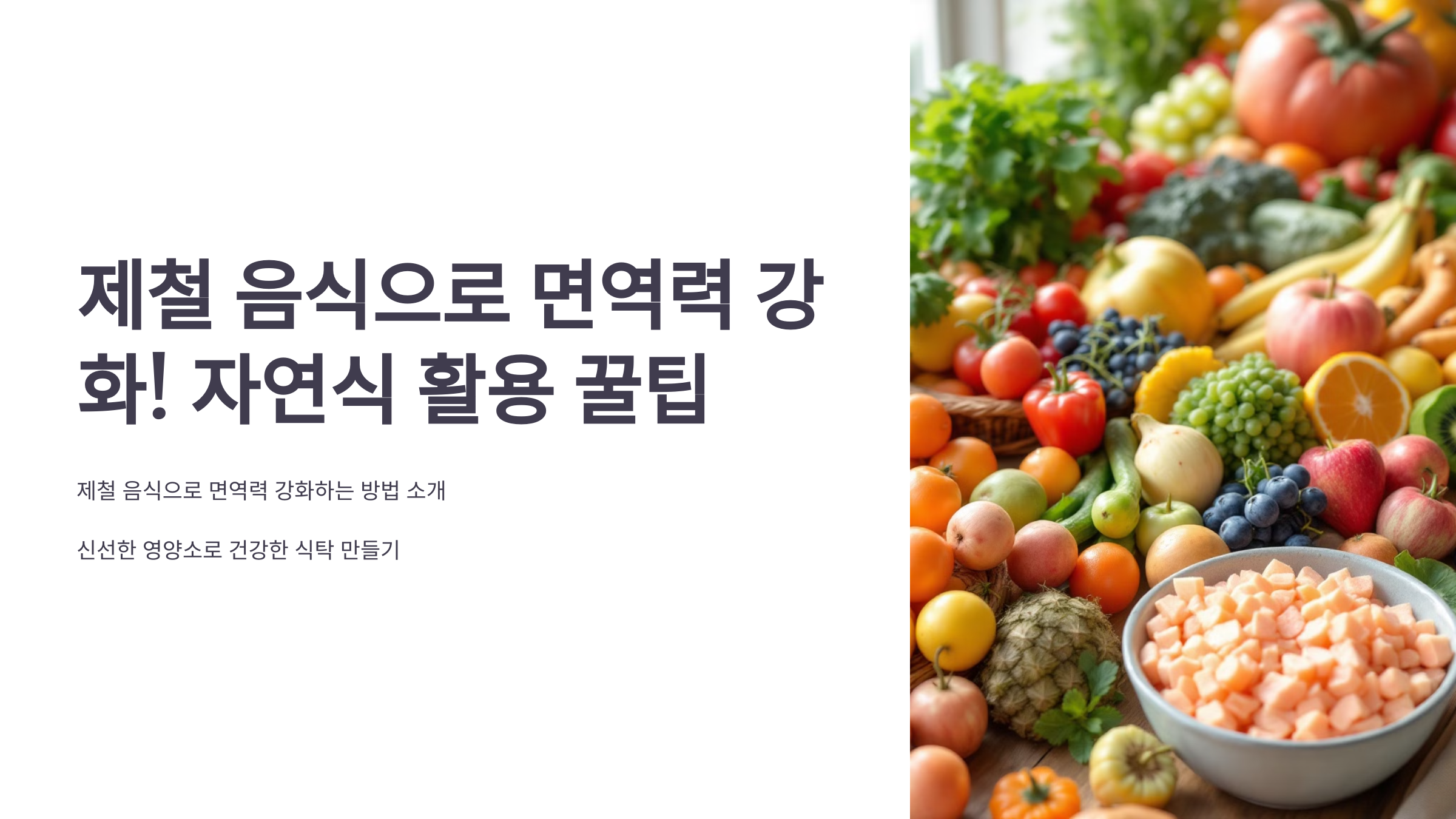 - 제철 음식은 면역력을 높이는 데 도움이 되지만, 충분한 수면, 운동, 수분 섭취 등도 함께 실천해야 합니다.