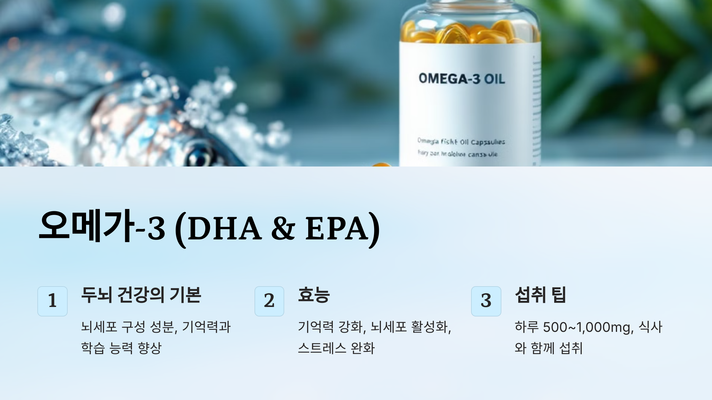 1️⃣ 🧠 오메가-3 (DHA & EPA): 두뇌 건강의 기본